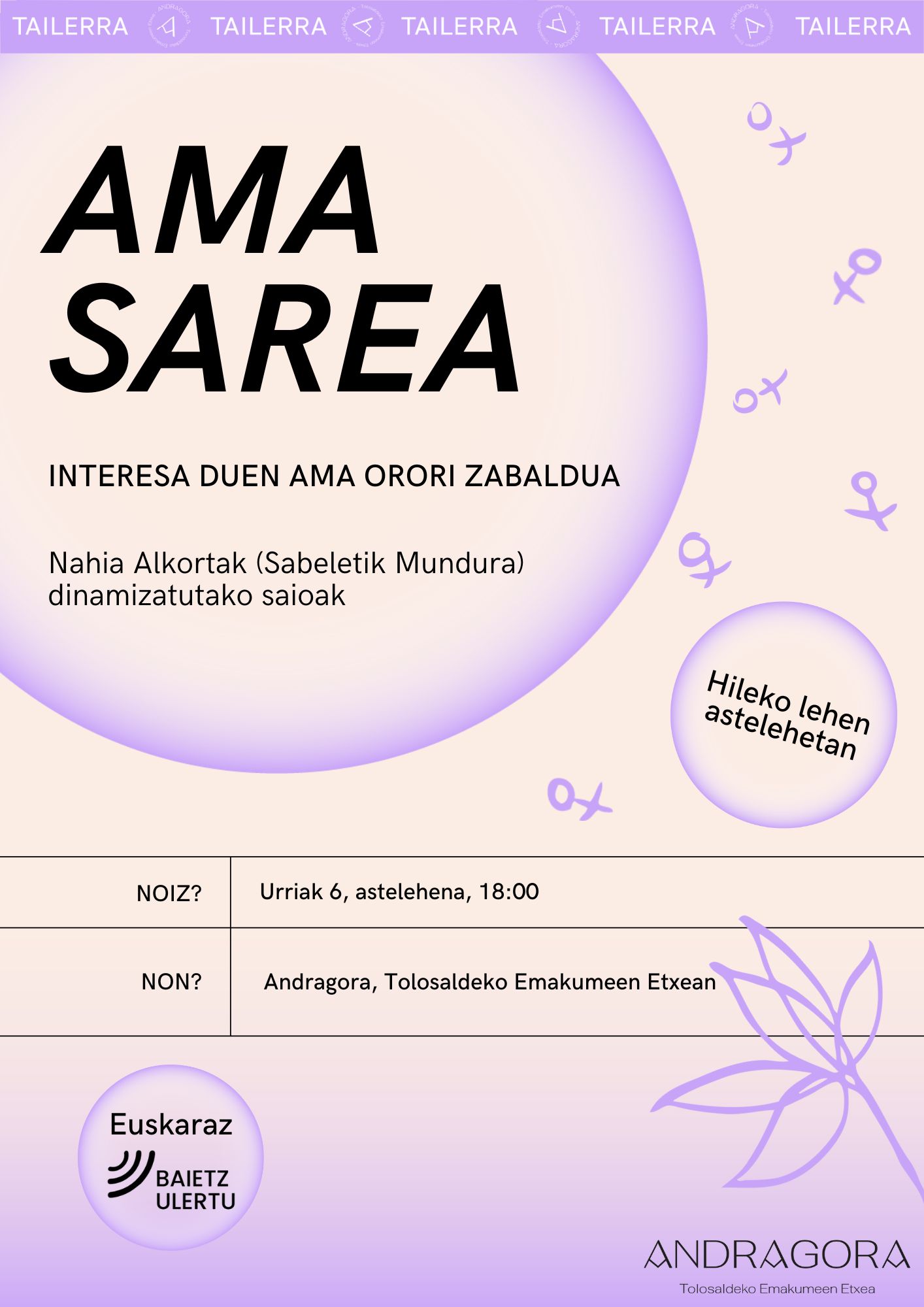 Interesa duten ama guztiei irekitako espazio honetan, besteak beste, amatasunaren inguruko hausnarketa bultzatzeaz gain, parte hartzaileek ekar ditzaketen kezka eta zalantzak konpartitzeko espazio segurua izango da, eta amak saretzea eta elkar sostengatzea izango du helburu.