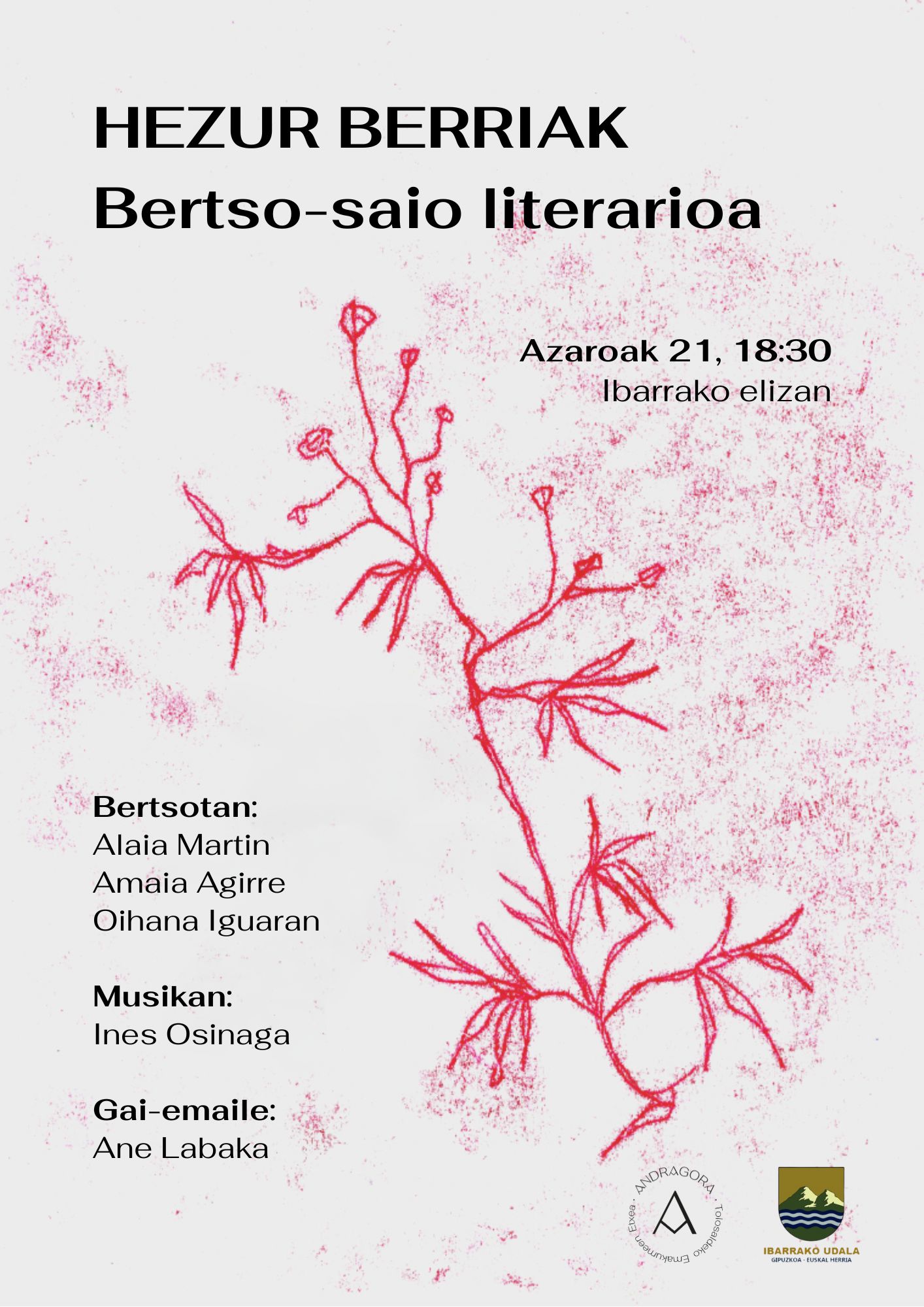 Azaroak 21ean, ostiralean, arratsaldeko 18:30ean Ibarrako Elizan HEZUR BERRIAK bertso-saio literarioa izango dugu.